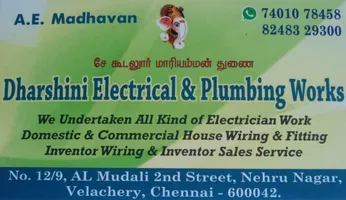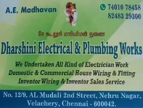 Dharshini Electrical & Plumbing Works is promoted by A.E.Madhavan at Chennai. We work hard to provide excellent customer service to all our clients.