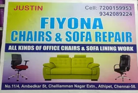 Fiyona Chairs & Sofa Repair is located by Chennai. We work hard to provide excellent customer service to all our clients. Since 2015, Fiyona Chairs and Sofa Repair has been the go-to destination for top-quality furniture repair services. Our team of skilled experts specializes in a wide array of furniture repair solutions, from office chair repair to sofa restoration. We take immense pride in offering impeccable craftsmanship and enduring solutions, whether it's rectifying a broken chair frame, replacing chair wheels, or reviving worn-out sofas.At Fiyona Chairs and Sofa Repair, we understand the significance of maintaining a comfortable and well-kept workspace. That's why we provide a range of services, including ergonomic chair repair, office chair frame repair, and chair upholstery repair, ensuring your office furniture remains in impeccable condition. Our dedication to excellence extends to your home, where we offer professional sofa reupholstery, leather sofa repair, and even antique sofa restoration for cherished family heirlooms.As your trusted local office chair repair shop and sofa repair specialists, we are committed to delivering swift and cost-effective solutions. We recognize the urgency of repairs, which is why we proudly offer same-day chair repair services, tailored to your specific needs. Conveniently located in 74, Vanniyar St, Gopal Nagar, Padi, Chennai, Tamil Nadu 600050, our shop seamlessly combines quality and affordability.When you choose Fiyona Chairs and Sofa Repair, you're selecting a local furniture repair shop that places a premium on professionalism, expertise, and customer contentment. Whether you require commercial chair repair, furniture refinishing, or custom sofa upholstery, we are here to rejuvenate your furniture and restore its allure. Visit us at 74, Vanniyar St, Gopal Nagar, Padi, Chennai, Tamil Nadu 600050 or contact us at 7200159953 to discover more about our services and how we can extend the life and comfort of your cherished furniture.We sell and repair all types of furniture, specialising in upholstery repairs on everything from rolling chairs and sofas, beds and wardrobes.