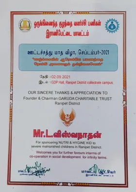 Garuda Charitable Trust is promoted by L.Viswanathan at Arakkonam.