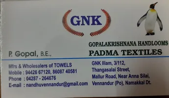 GNK ILLAM, 3/112, Thangasalai Street, Mallur Road, Near Anna Silai, Vennadur, Vattoor, Tiruchengode Taluk, Namakkal District, Tamil Nadu 637505, India