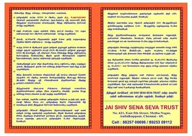 நிதியுதவி செய்வோர் JAI SHIV SENA SEVA TRUST என்ற பெயரில் வங்கி காசோலையாக மட்டுமே வழங்கிட வேண்டும் நன்றி!