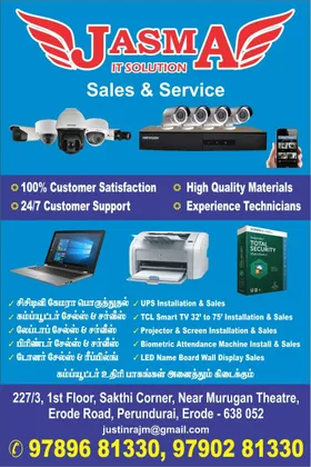 எங்களிடம் அனைத்து பிராண்ட் CCTV கேமராக்களும் சிறந்த முறையில் சேல்ஸ் & சர்வீஸ் செய்து தரப்படும். மேலும் கம்ப்யூட்டர் உதிரிபாகங்கள் அனைத்தும் கிடைக்கும்.