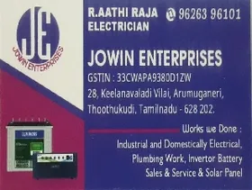 Jowin Electrical and Plumbing Works is promoted by R. Aathi Raja at Thoothukudi.