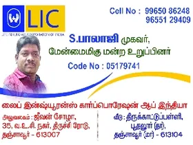 LIC Balaji is promoted by S.Balaji at Thanjavur. We work hard to provide excellent customer service to all our clients.
