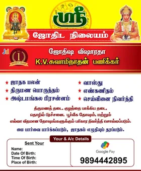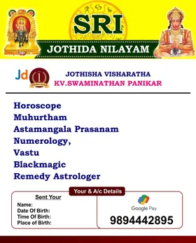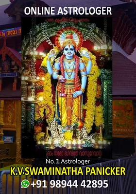 The Panikkar family is the most famous family in Kerala for doing pooja. KV.Swaminathan Panicker was born in that family, in that lineage. He has been doing astrology, prasnam, pooja methods and homams for ten generations. In that family they are very involved in Vishnu Maya Puja. In that Vishnu Maya Pooja, the pooja that can solve all blackmagic problems, problems, hardships etc. Vishnu Maya Pooja is done by KV.Swaminathan Panikkar very well. Horoscope can be viewed by phone and online.