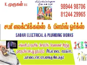 Sabari Electricals and Plumbing Works is owned by Mr K. Murugan at Tirupur.