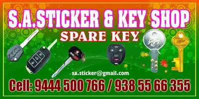 We do all four-wheelers, number plate stickers, Fore-wheelers, suncontrol Film Car, Offoce, for vehicles and two-wheeler, Car, Number Plat Sticker, 220 Pulsar Spare Key, Ktm Key, Rupper Stamp work in the best way, at a reasonable price.
