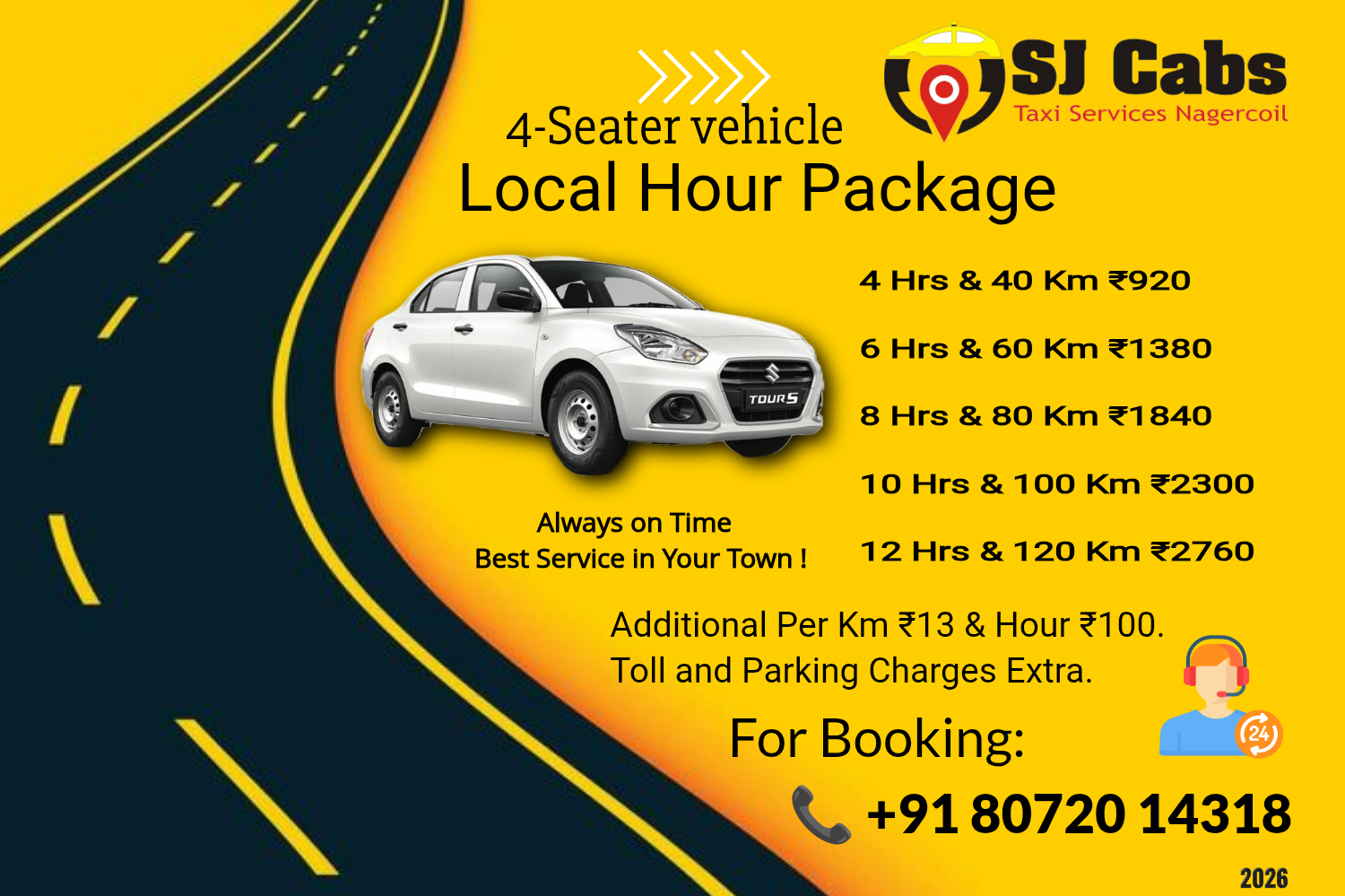 At SJ Cabs, we understand the importance of punctuality, comfort, and safety. Our well-maintained fleet and professional drivers ensure a smooth and pleasant journey every time. We offer tailored packages to suit your specific needs: