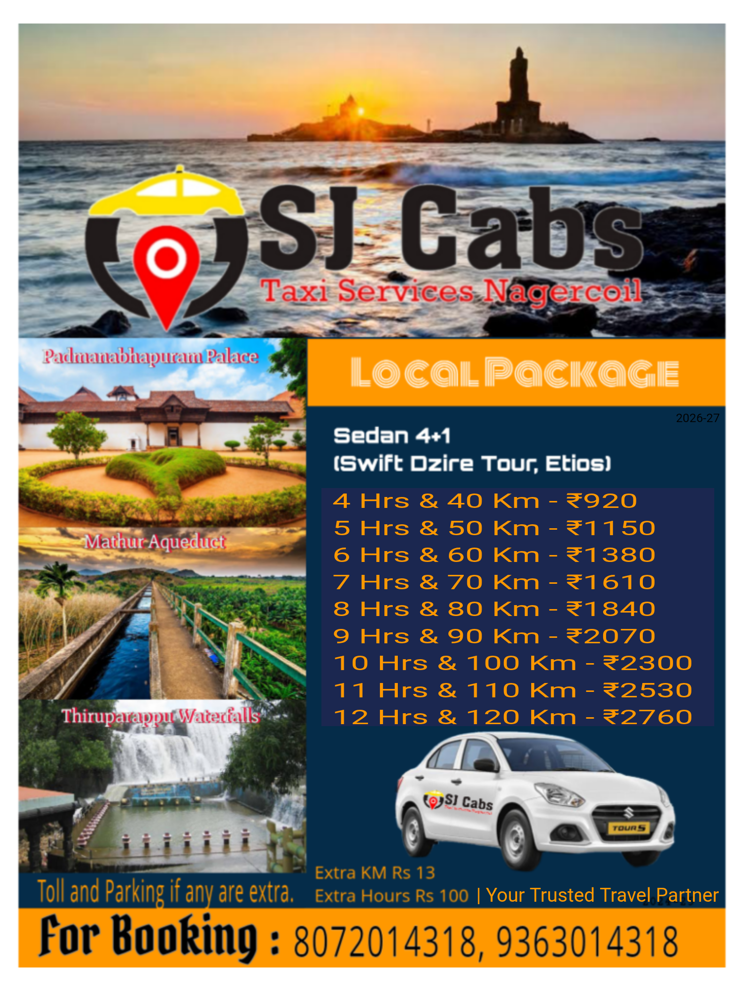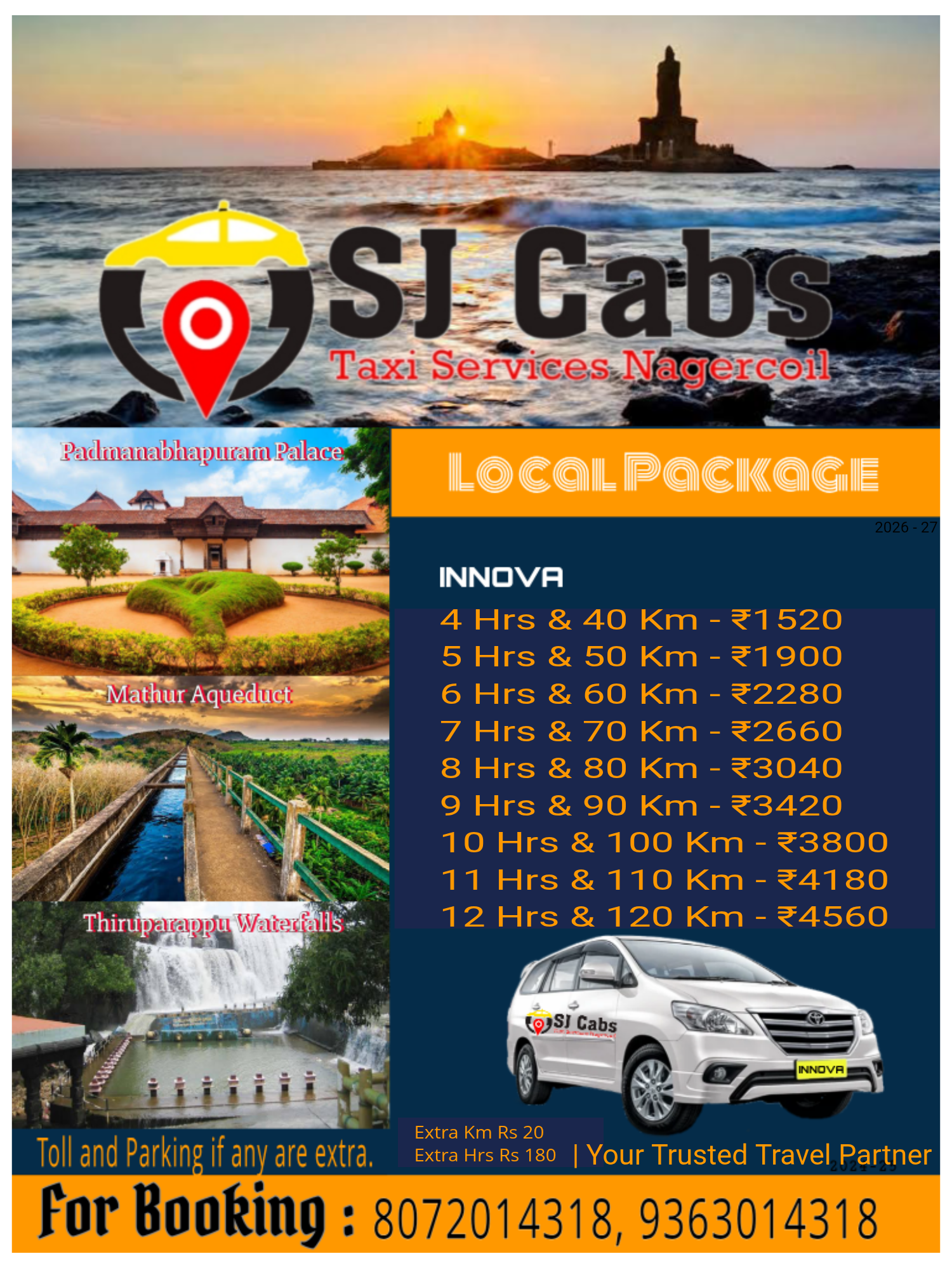 SJ Cabs is promoted by B.Paramasivam at Nagercoil. We work hard to provide excellent customer service to all our clients.