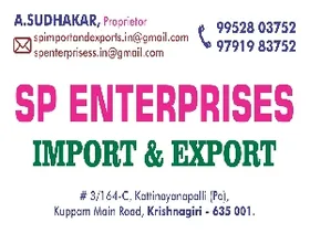 SP ENTERPRISES is promoted by A.Sudhakar at Krishnagiri. We work hard to provide excellent customer service to all our clients.