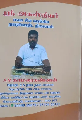 Sri Agasthiyar Maha Siva Vakkia Nadi Jothidam is promoted by A. M. Thamaraikannan at Chennai. We work hard to provide excellent customer service to all our clients.