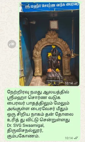 Srimaha Sorna Bhairavi Sametha Sornakala Bhairavar Thirukovil is promoted by Sri Vembusidhar Gunasshegare Swamigal at Kumbakonam. We work hard to provide excellent customer service to all our clients.