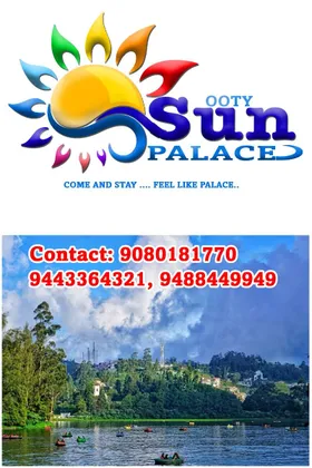 மலைகளின் மகள் சன் பேலஸ். ஊட்டியில் உள்ள சன் பேலஸ் ரிசார்ட் அனைத்து வசதிகளுடன் கூடிய தங்குவதற்கு ஒரு சிறந்த இடமாகும். எங்கள் வாடிக்கையாளரின் தேவைகளுக்கு ஏற்ப நாங்கள் எங்கள் சேவையை வழங்குகிறோம்.
