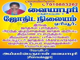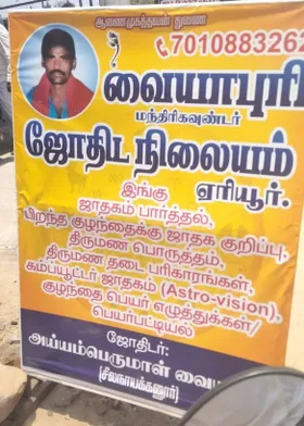Vaiyapuri Astrology Center is promoted by Ayyamperumal Vaiyapuri at Dharmapuri. We work hard to provide excellent customer service to all our clients.