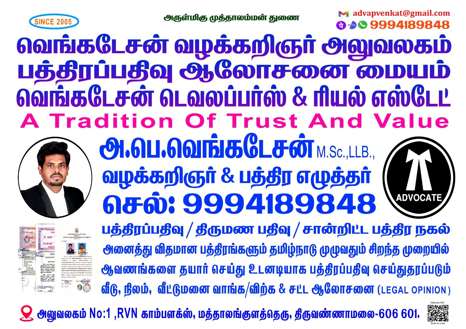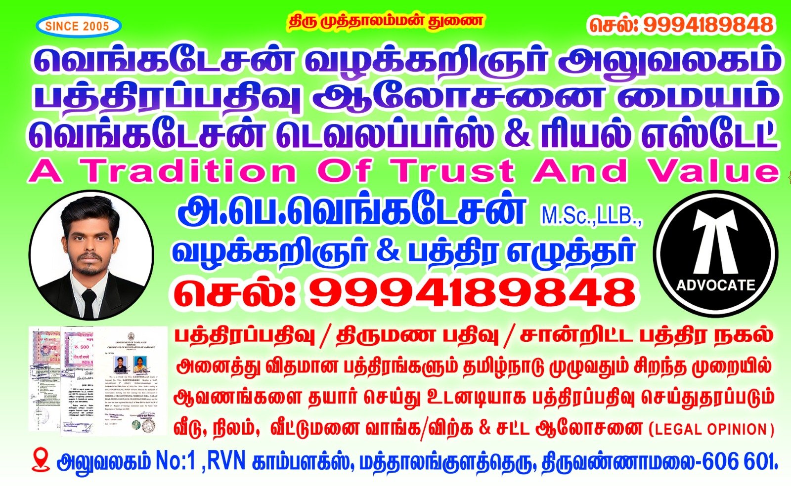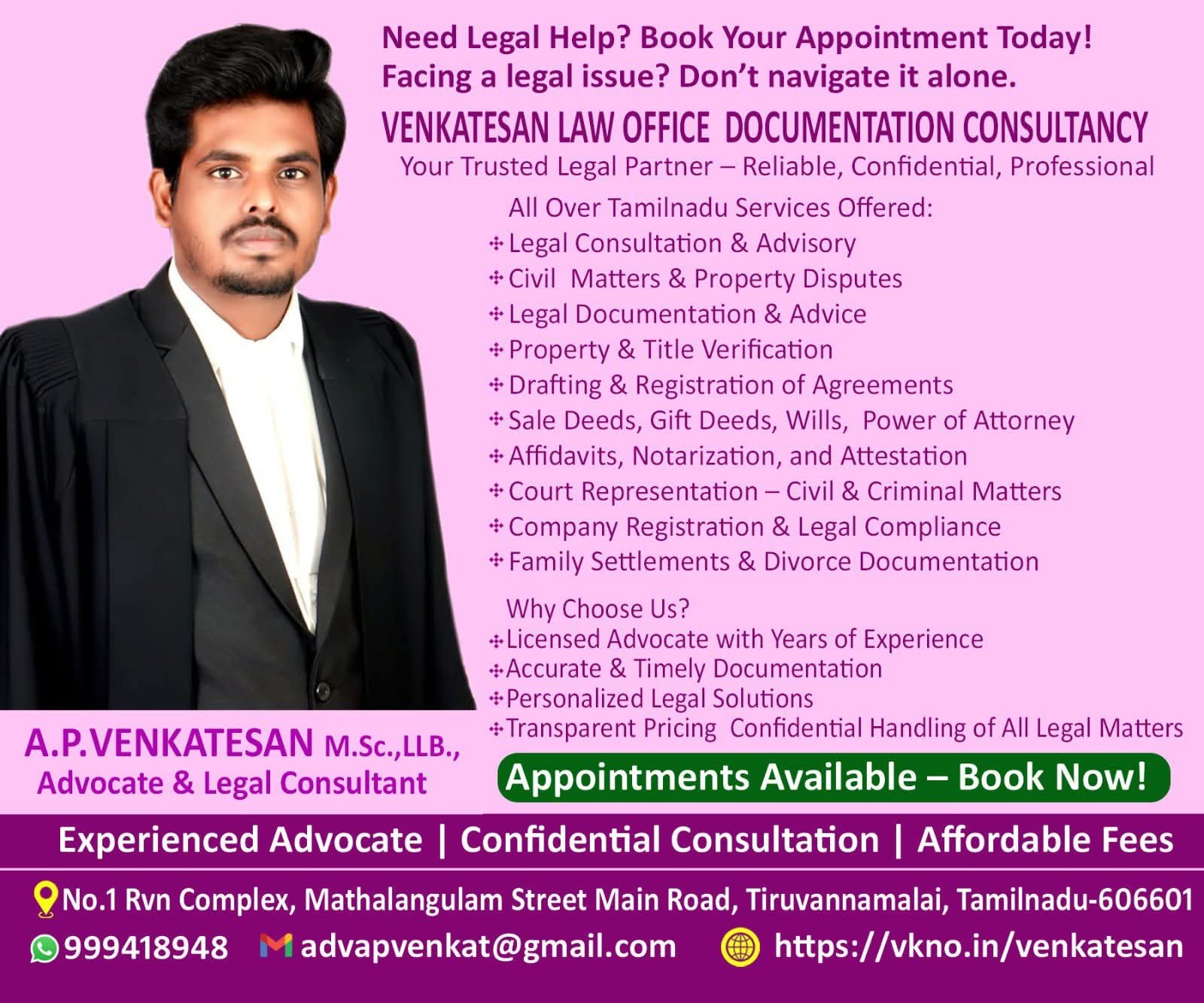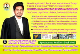 VERY GOOD LEGAL SERVICE AND DOCUMENT CONSULTANCY CENTRE FOR TIRUVANNAMALAI BEST ONE FOR YOUNG ADVOCATE AND GREAT WORK DONE WITH IMMEDIATLY