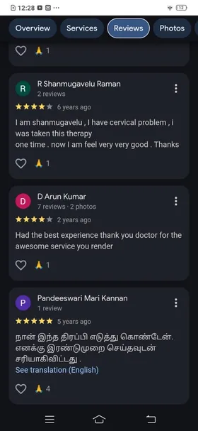 I myself experienced that 80% of pain was reduced from my spinal. Previously the lumbar scri pain was so severe and could not able to sit properly. Now I felt lot of improvement. Further, he has moder Detail